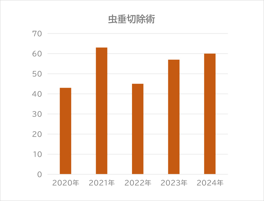 | 虫垂(虫垂炎) | 虫垂切除術(盲腸部分切除術含) | 45 | 45 | 0 |