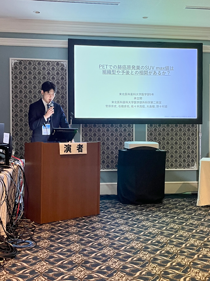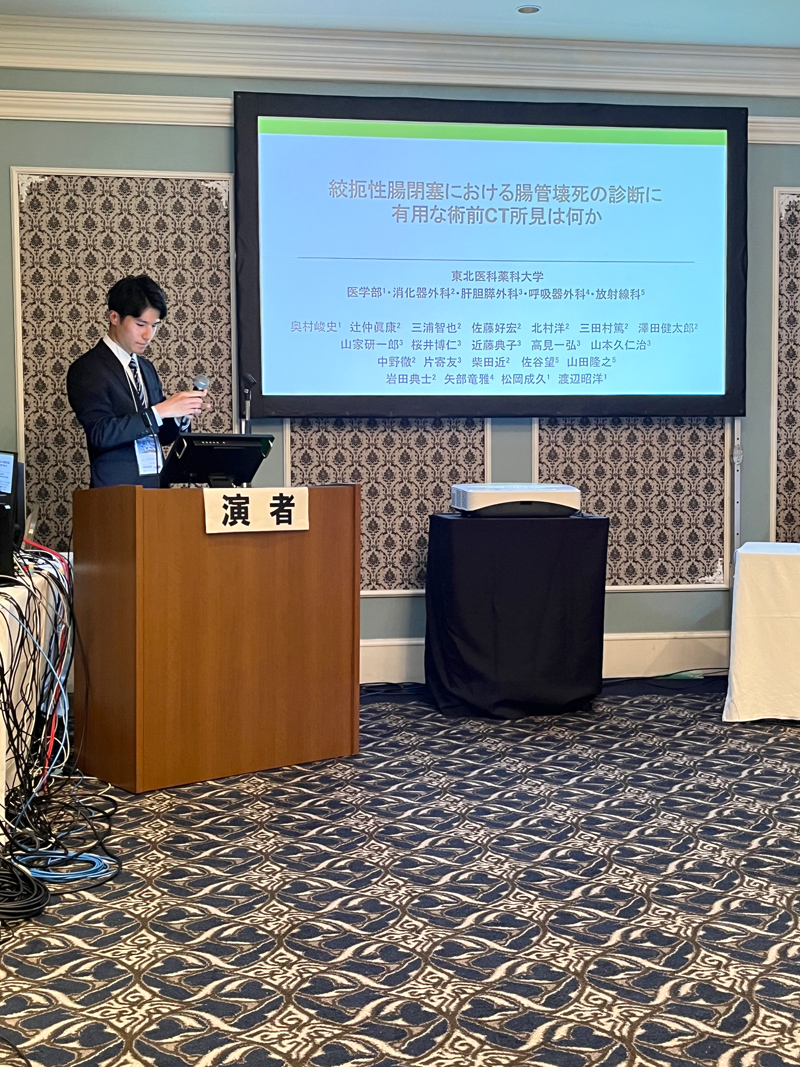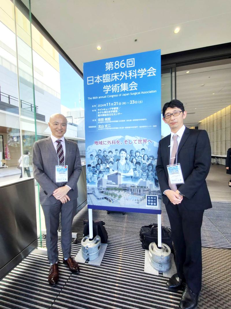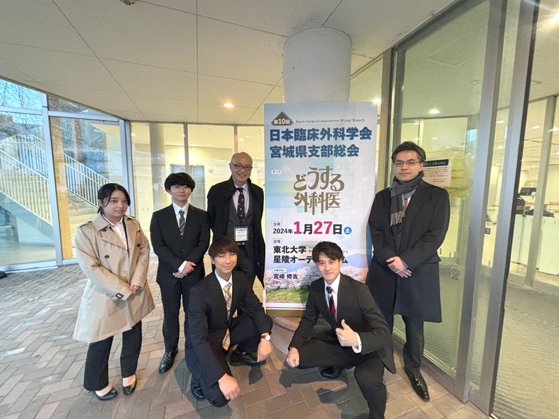 2024年1月27日に仙台で開催された第10回日本臨床外科学会宮城県支部総会にて、当科の辻仲眞康先生、当院初期研修医の岩田典士先生に加え、当科を選択実習でローテートした医学部5年生の山形一晃さん、秋元実さんが症例発表を行いました。
