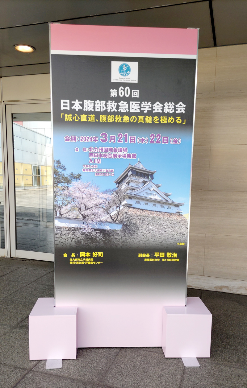 2024年3月21日、22日開催の第60回日本腹部救急医学会総会(北九州市)にて、4名が発表、1名が司会にて参加してきました。